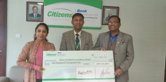 सिटिजन्स बैंकद्वारा विद्यालयलाई आर्थिक सहयोग