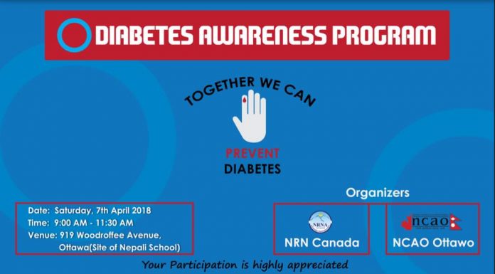 क्यानडामा मधुमेह सचेतना कार्यक्रम सम्पन्न